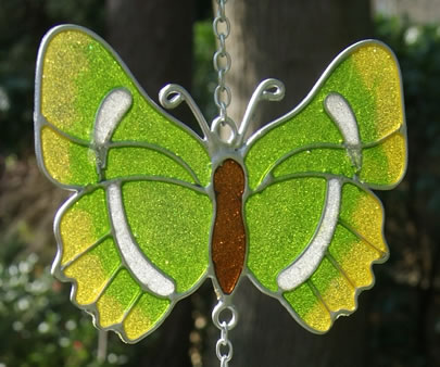 Hangs on a silver alloy chain with a hook at the top for ease of hanging.