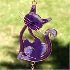 Pretty purple resin cat with lilac highlights sparkles in the sunlight and features copper wire detailing and decorative faux gemstones on his ears.