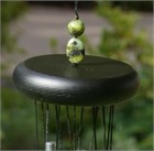Six solid chimes of silver alloy hang beneath a hardwood top of black ash.